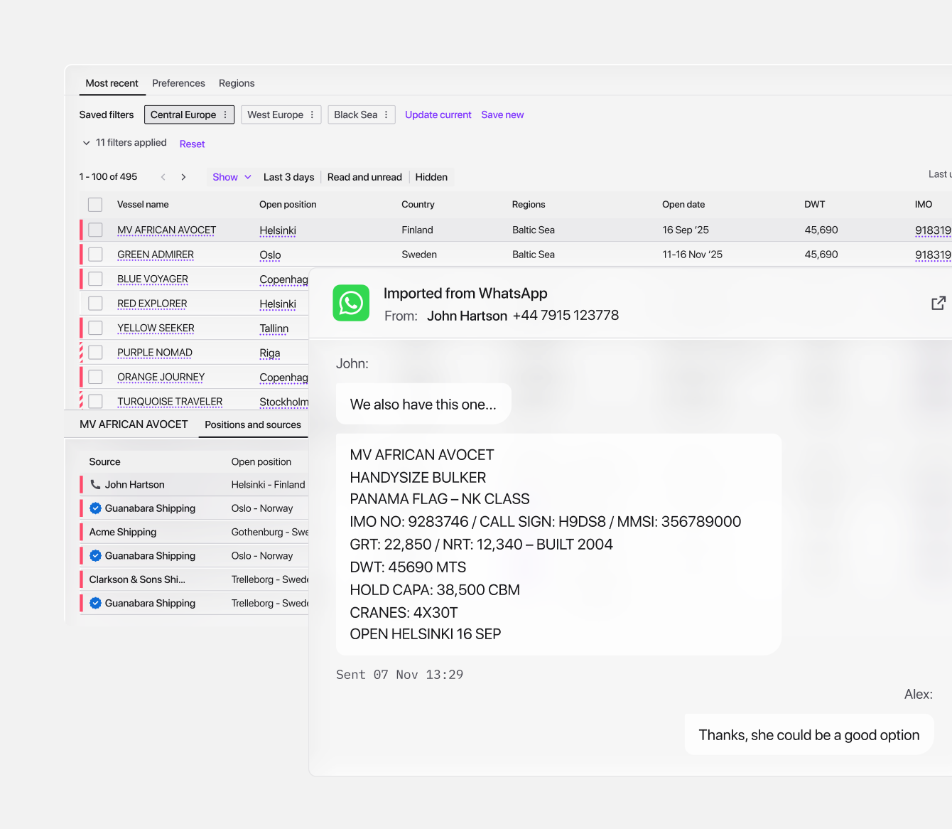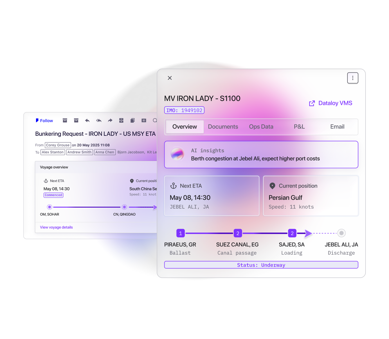 Sedna is the operating system for shipping that connects communication, commercial operations, and data across your organisation. It replaces disconnected tools with one intelligent platform where chartering, operations, and finance teams collaborate in real-time. Built specifically for shipping workflows, Sedna eliminates data silos and speeds up decision-making.