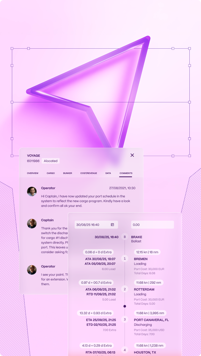 Sedna Trade creates a single source of truth shared across teams. When voyage details update, everyone sees changes immediately. No more data re-entry, version conflicts, or settlement delays. The result is smoother handoffs and faster payment cycles.