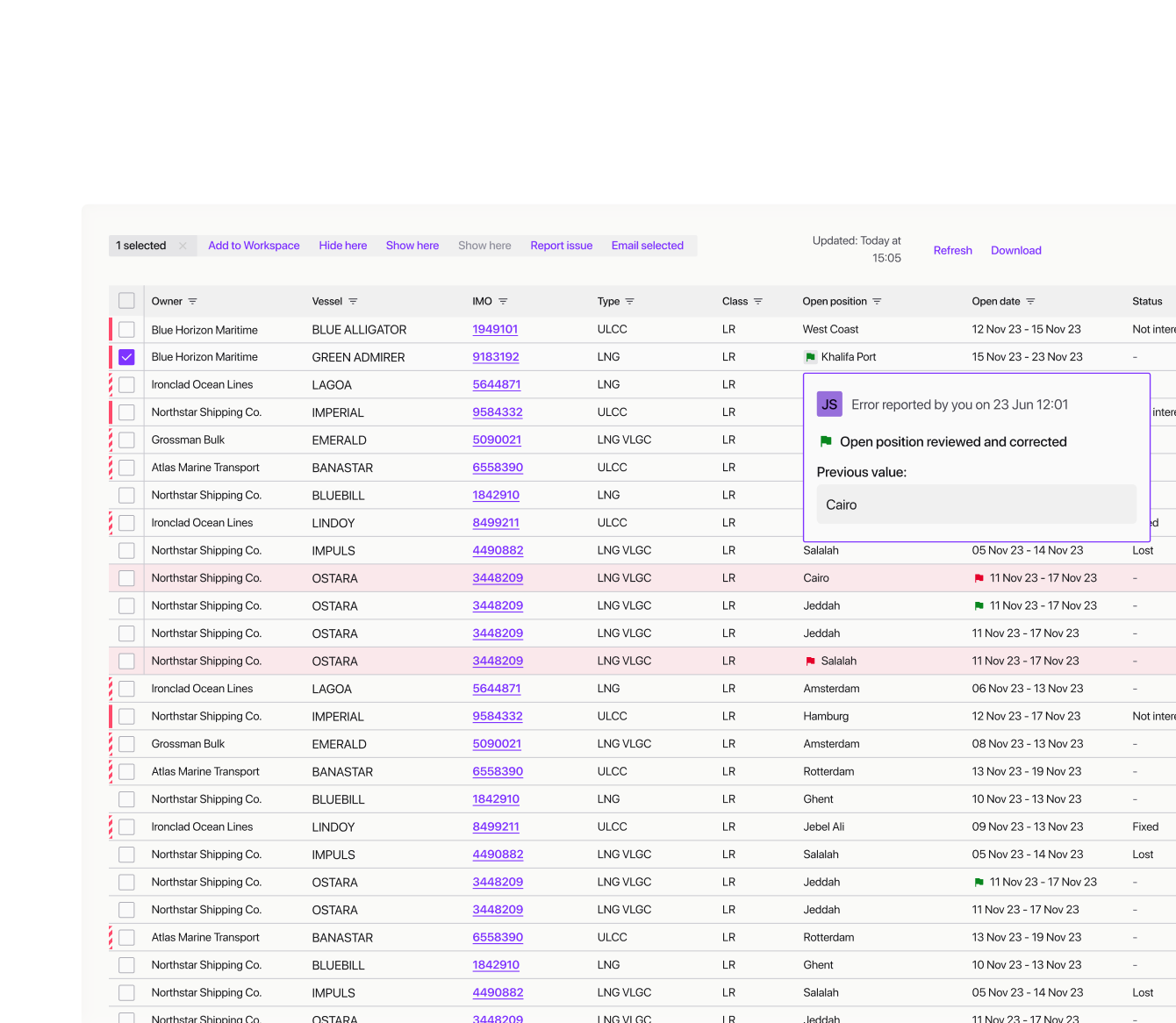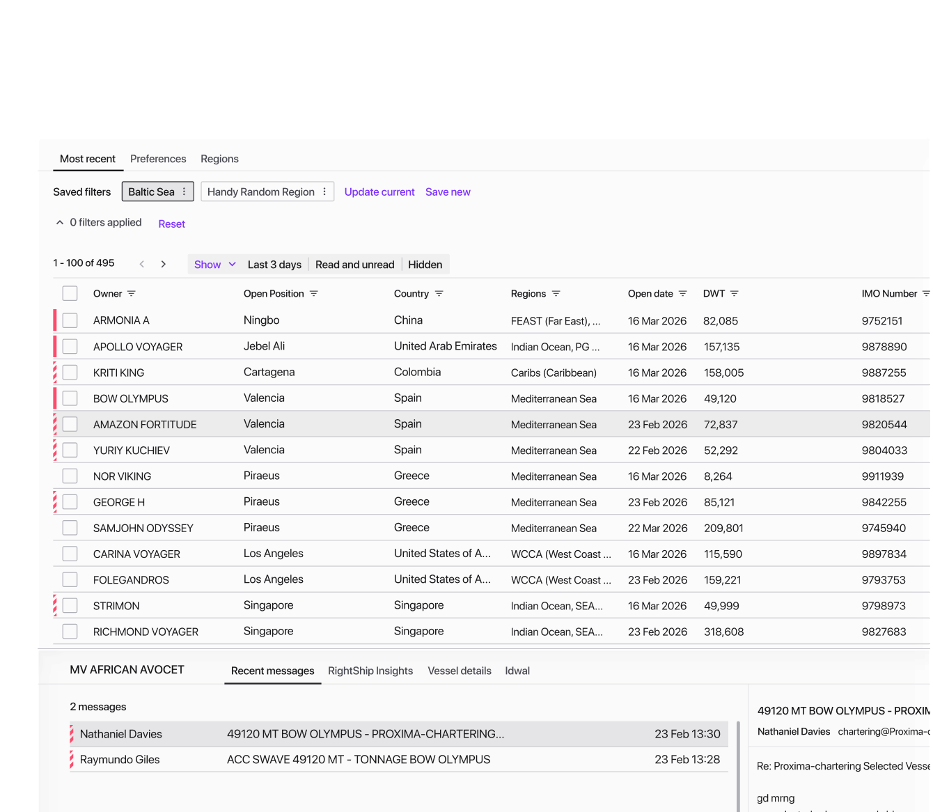 Parse critical S&P data from emails into a vessel database. Recognise purchase enquiries, scan for ships meeting criteria, and check availability. Instant alerts with recommendations seconds after a message arrives. Everything shipbrokers need for successful S&P.