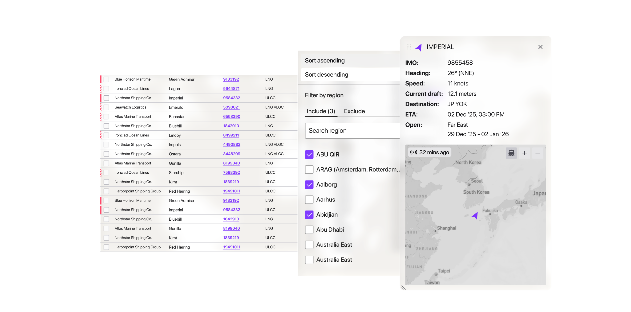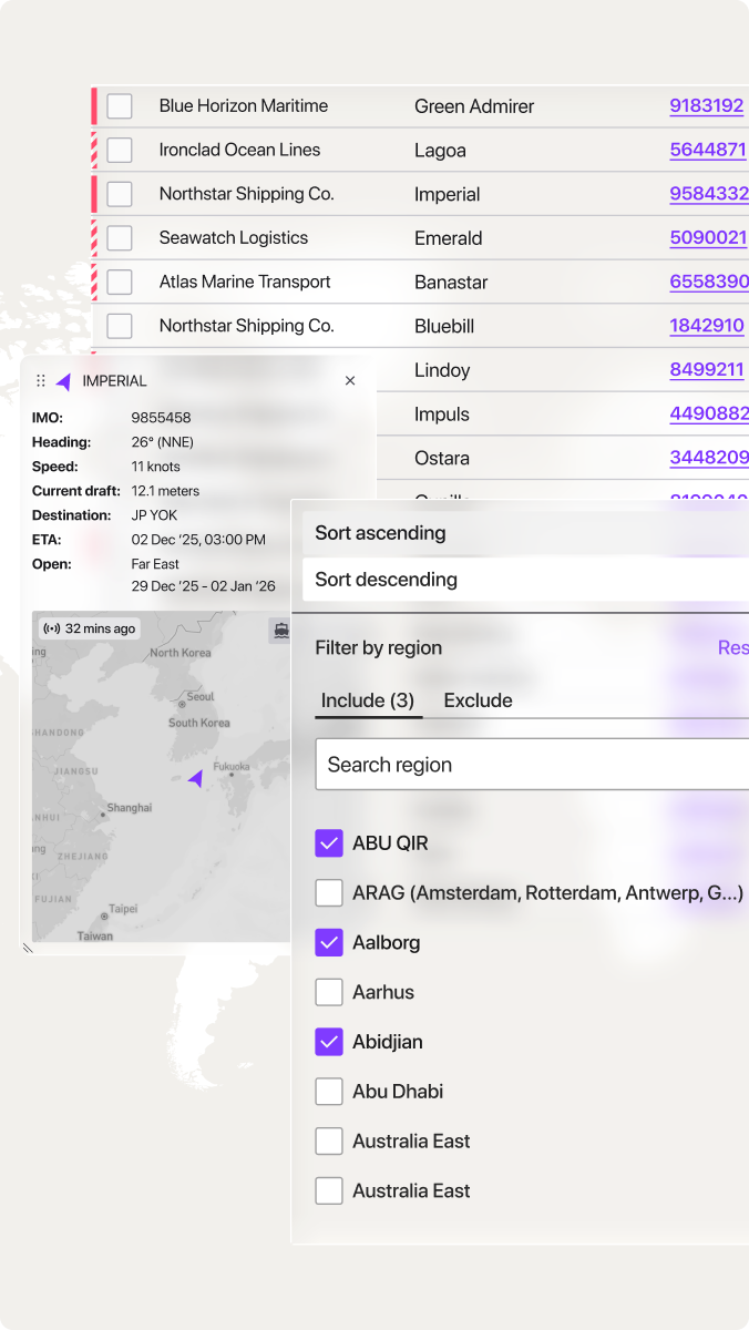 Validate positions and ETAs with embedded maps and regions. Access Lloyd's List Intelligence for vessel details, ownership, and sanctions. RightShip data for vessel ratings. Make compliant, confident decisions backed by the best data available.