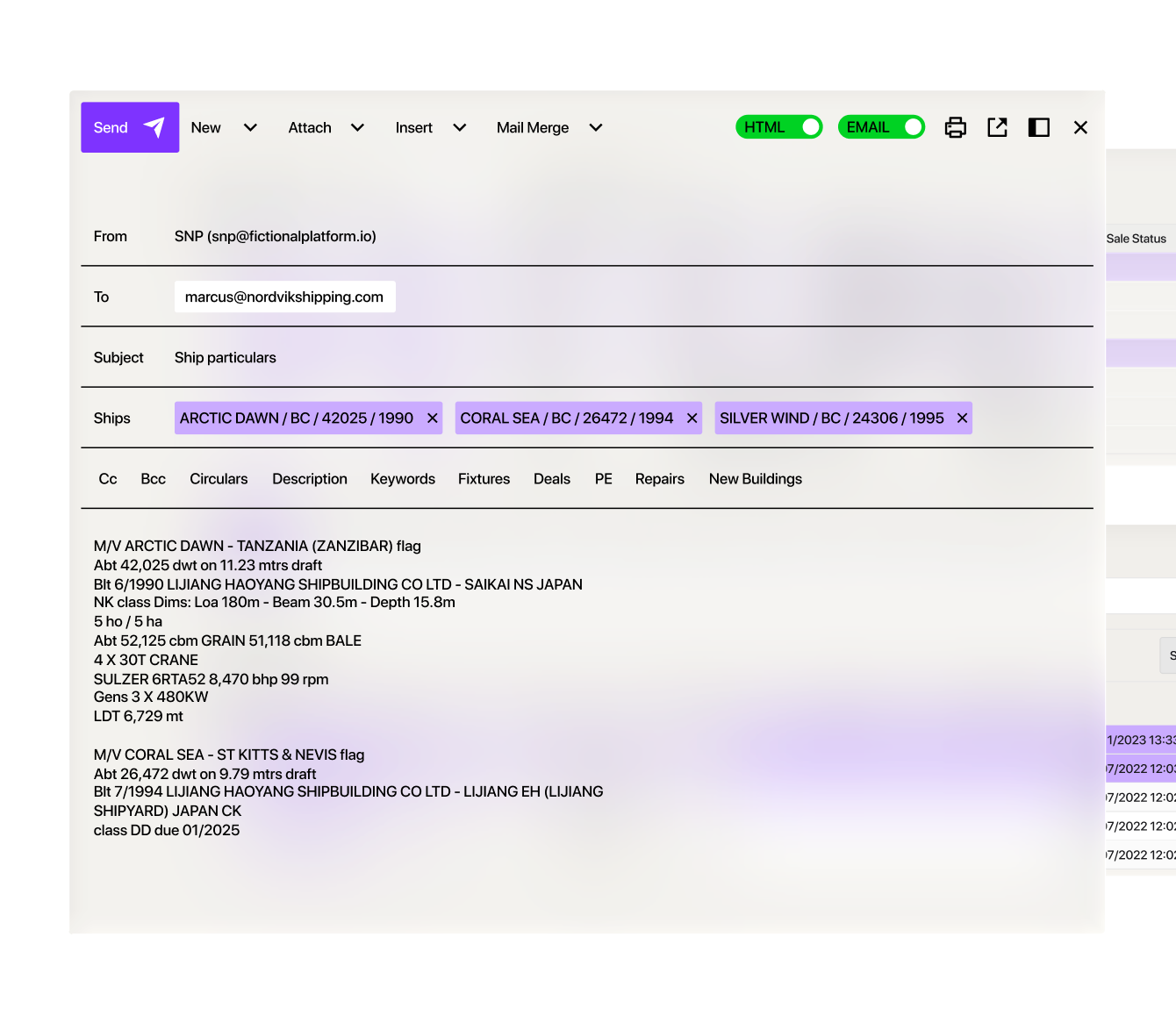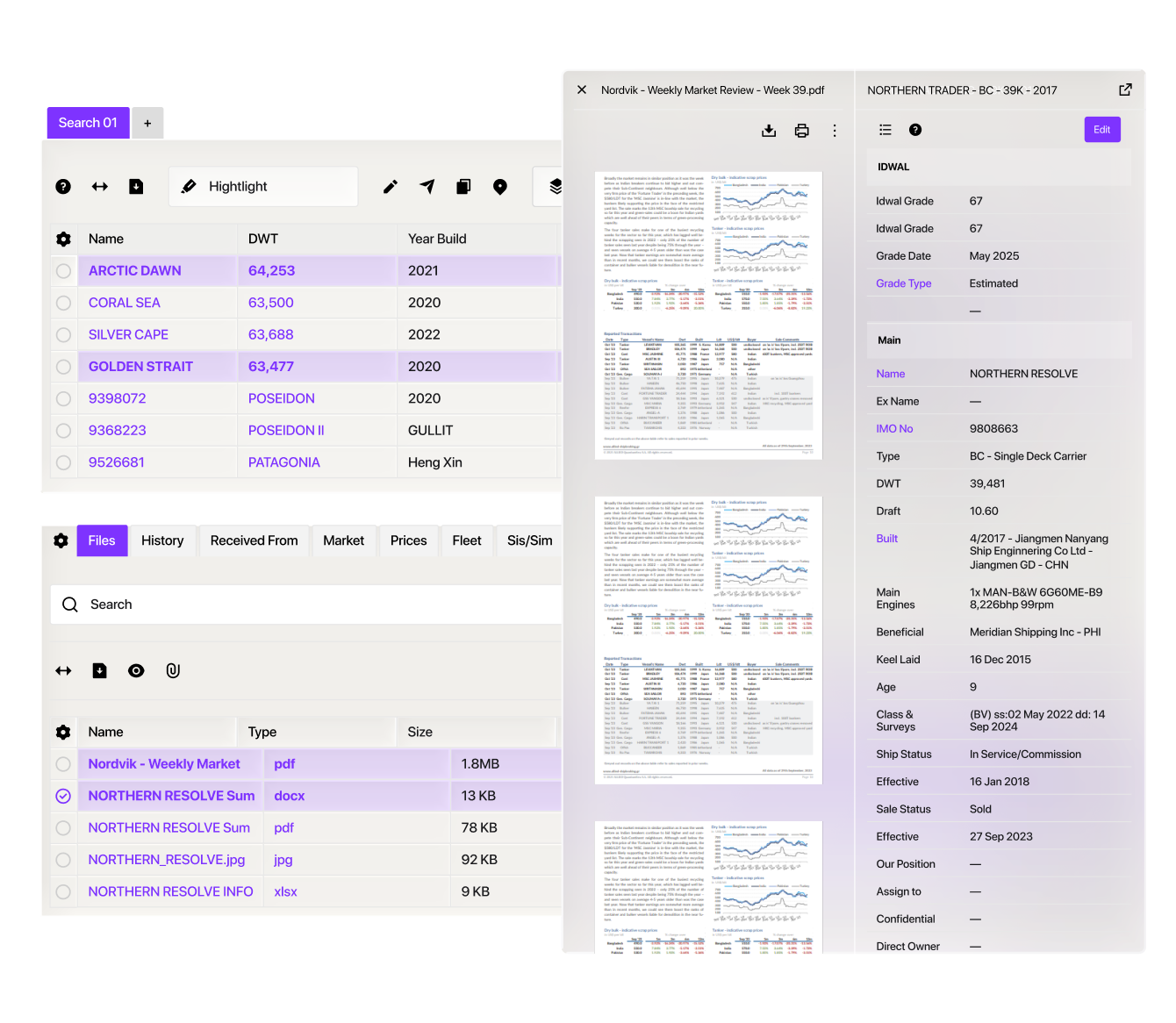 Bring messages, purchase enquiries, commercial advices, and documents together around each vessel.